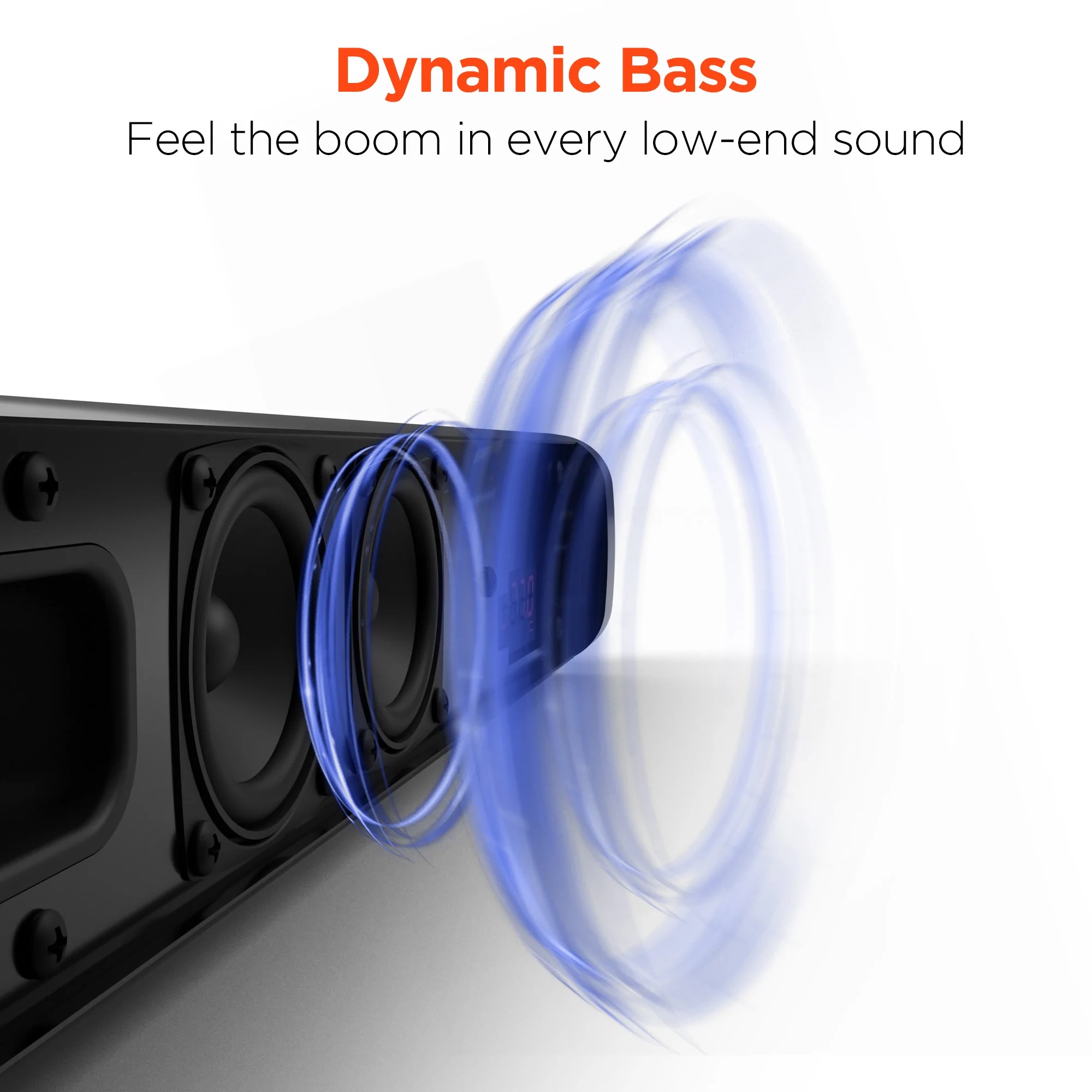 This design features 40W power full-range drivers to make your gaming, music, and movie experience unique. It has a 3D surround sound, multi-function remote control, and more.
