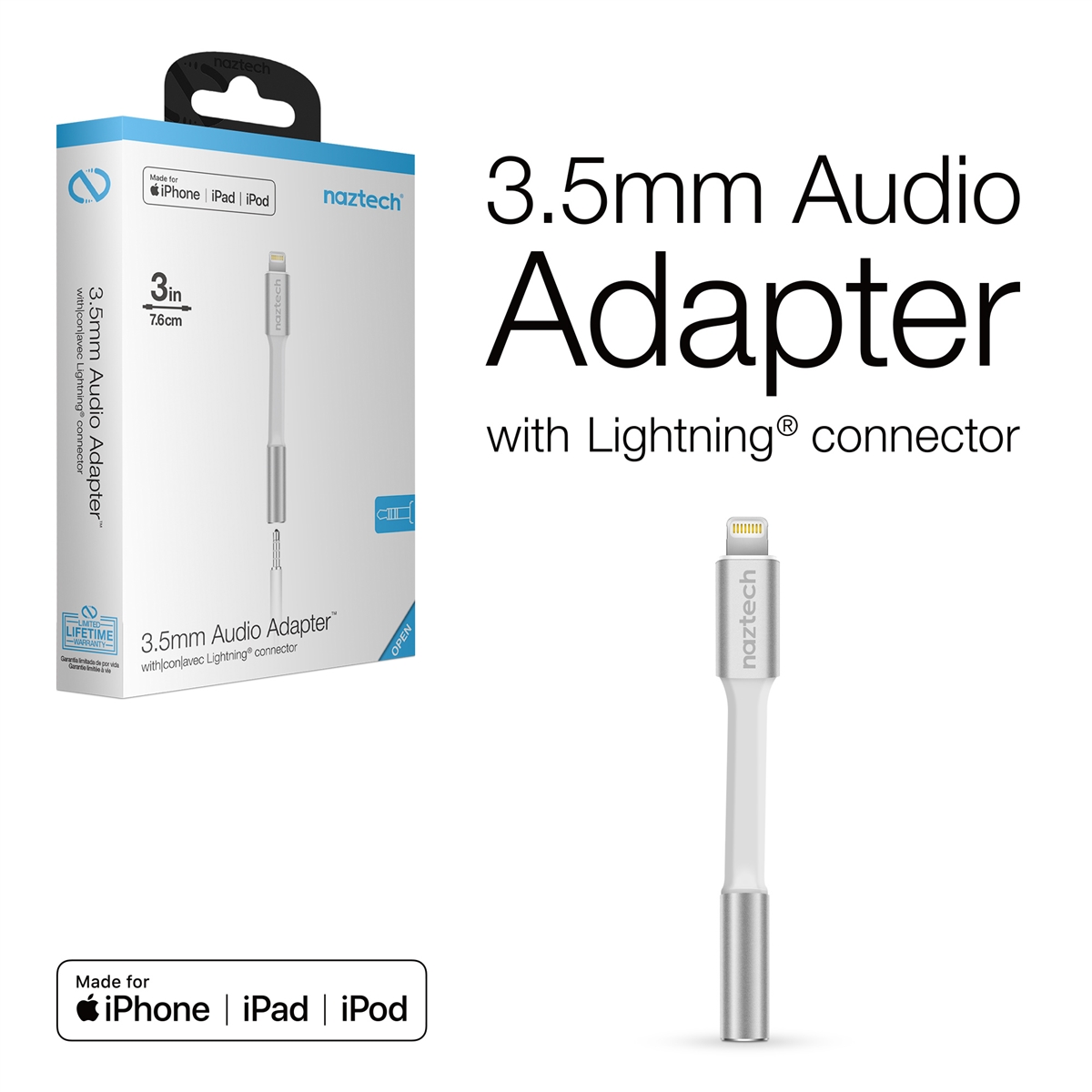 Miss using your favorite headphones? Want your headphone jack back? It’s time to reconnect! This ultra-compact adapter allows you to connect wired auxiliary devices to your iPhone’s lightning port. It features a 3.5mm auxiliary port on one end and a Lightning connector on the other for instant Plug & Play connections between your audio devices. The auxiliary input port is compatible with wired headphones, earphones, car stereos, speakers and more. This 3-inch mini cable offers absolute portability with an incredible bend lifespan that can stand up to repeated plugging and unplugging thanks to reinforced strain relief collars and a durable yet flexible jacketing. No jack? No problem! Enjoy your sound, your way!